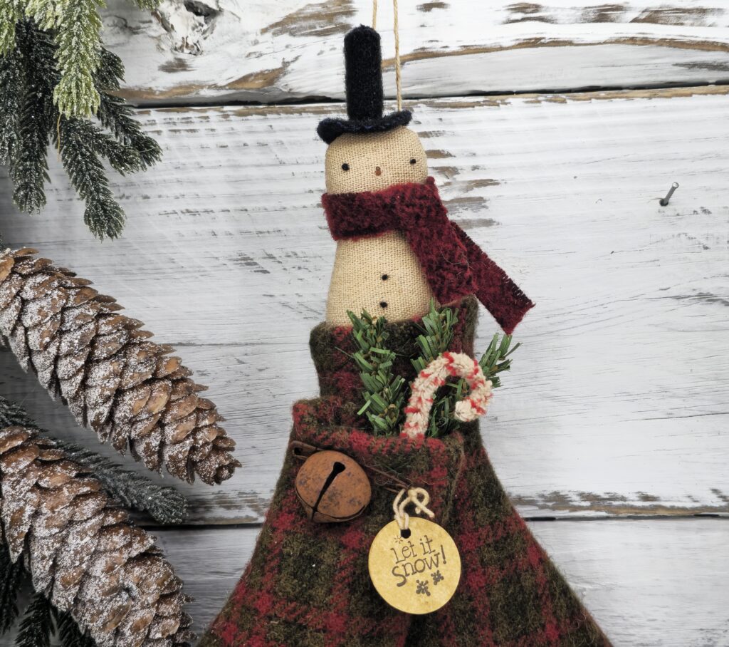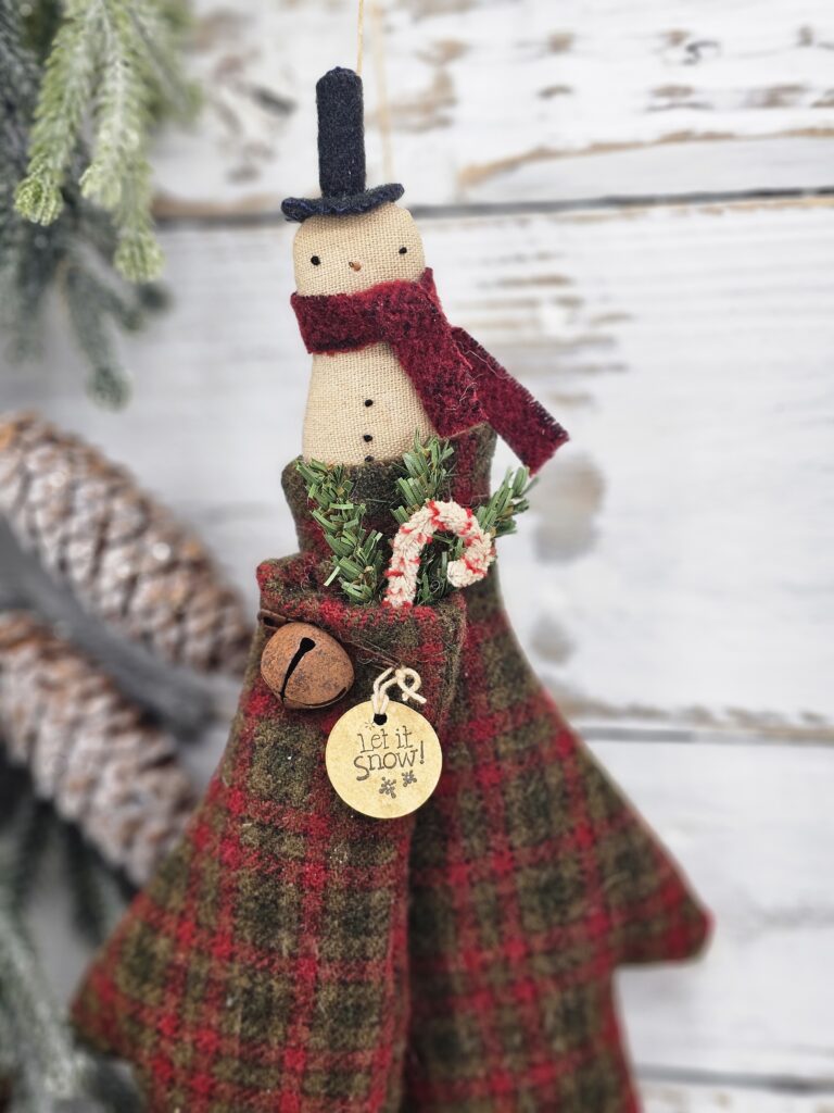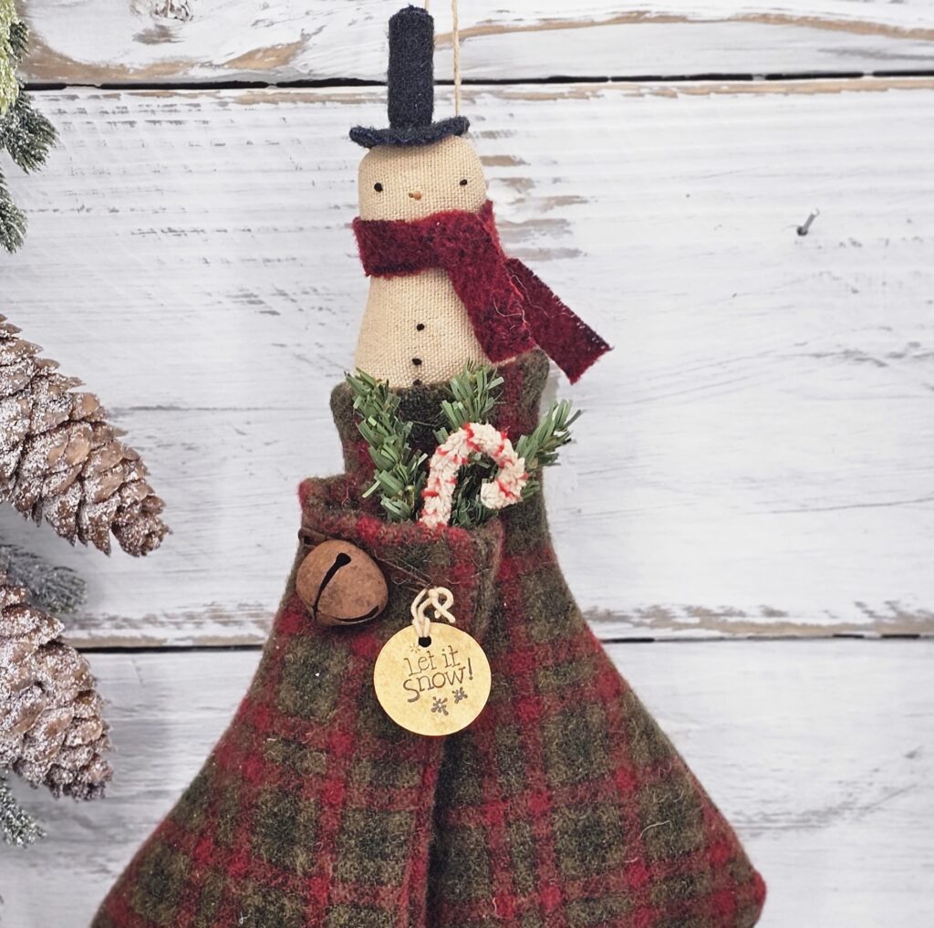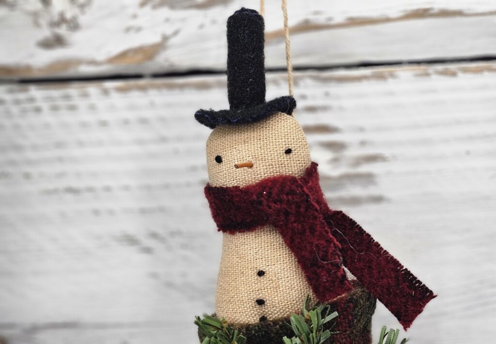 • Meta Description (150–160 characters): Handmade primitive wool mitten snowman door greeter with rustic farmhouse details. Perfect Christmas front door or winter holiday accent.